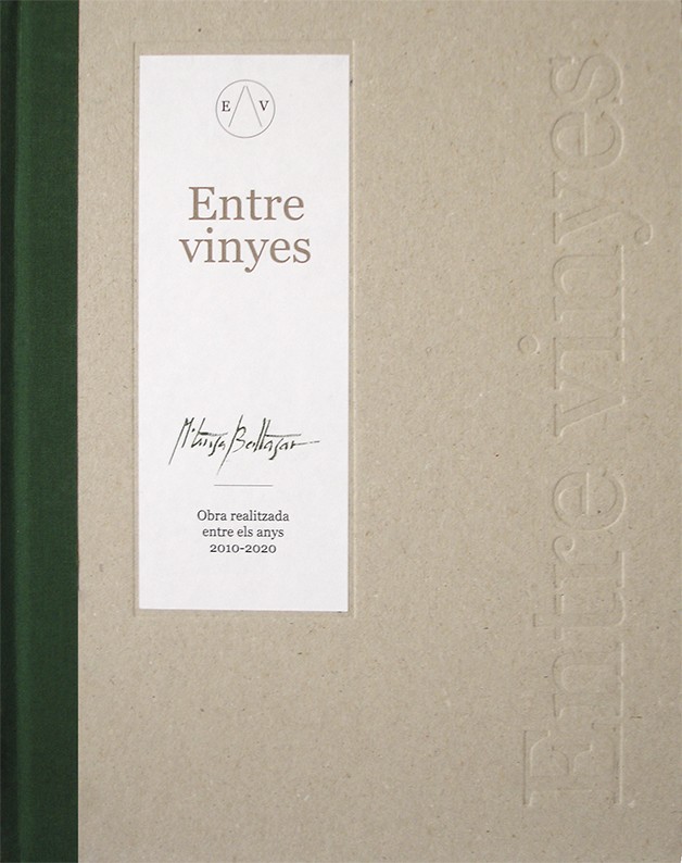 Entre vinyes recull 96 obres realitzades per Maria Teresa Baltasar a la dècada 2010-2020. Representen paisatges de vinya del Penedès i, a grans trets, estan reproduïdes per ordre cronològic. Algunes estan anotades amb textos breus de la poeta Nati Soler Alcaide inspirats en els olis de la Maria Teresa i en les mateixes vinyes, que també formen part del seu paisatge. Els petits fragments que hi ha a les pàgines de color, i que acompanyen les fotografies de la pintora, de les vinyes, del taller i de les exposicions, els va caçar al vol la Montse Juvé durant unes converses que va mantenir amb l'artista, al seu taller, a començament d'aquest any 2020.