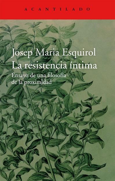 La resistencia íntima es un atento y profundo ensayo sobre la condición humana. Su autor nos descubre de qué modo el auténtico cuidado de uno mismo da luz y calor a los que están cerca, protegiéndoles y sirviéndoles de guía en el camino. «Reconocemos que resistencia íntima es el nombre de una experiencia, propia de la comarca de la proximidad; comarca que no es visita de un día, sino habitual estancia. Pero hoy cuesta quedarse en ella. La proximidad no se mide en metros ni en centímetros. Su opuesto no es la lejanía sino, más bien, la ubicua monocromía del mundo tecnificado. Hemos visto cómo la cotidianidad y el gesto de la casa son importantísimas modalidades de la experiencia de la proximidad».