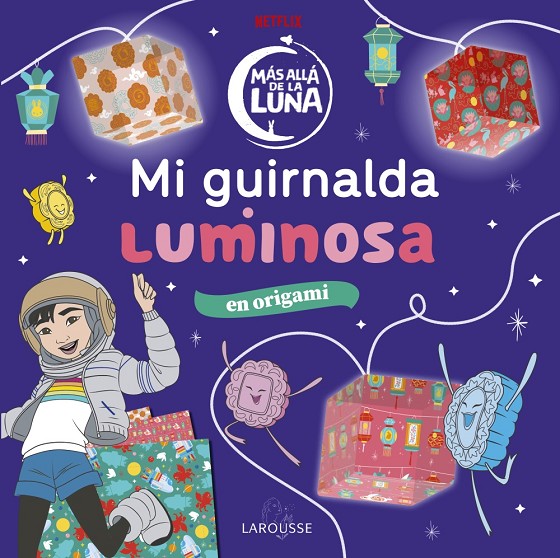 Un kit de origami para crear una guirnalda luminosa basada en «Más allá de la Luna», la nueva línea de películas de animación de Netflix. «Más allá de la Luna» fue creada por Glen Keane, uno de los grandes nombres de los estudios de Disney, responsable también de la animación de «La bella y la bestia» o «Aladdín». La película, de género musical, tiene lugar en China, donde la joven heroína construye un cohete para ir a la Luna a encontrarse con la Diosa de la Luna. Ella piensa que la Diosa podrá traer de vuelta a su madre fallecida.El kit incluye dibujos de la película, con hojas de papel para doblar, en un pack de cartón. Siguiendo los paso a paso con unas sencillas instrucciones se forman los cubos en los que se introducirán las luces de la guirnalda luminosa.
