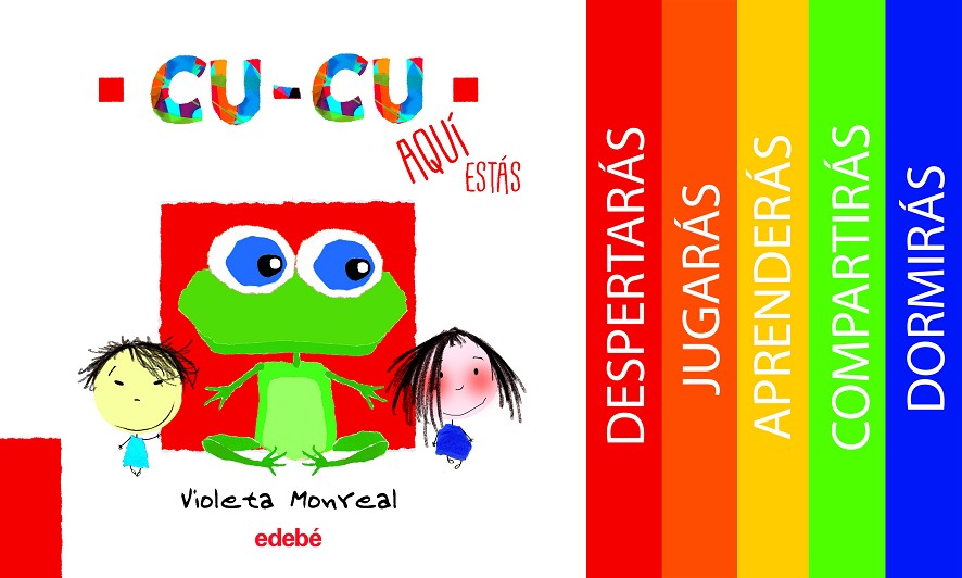 La colección AQUÍ ESTÁS da la bienvenida a los más pequeños. El formato de los libros se compone de páginas crecientes con colores brillantes. El libro crece, a la vez que los niños y las niñas. Cada página será un estímulo para que el amor por los libros surga a partir de la lectura compartida, para que los vínculos familiares y sociales se desarrollen y para formar personas seguras y creativas. ¡Encuentra en cada página a la rana, el grillo, el pollito o el gato que repite su cantar!