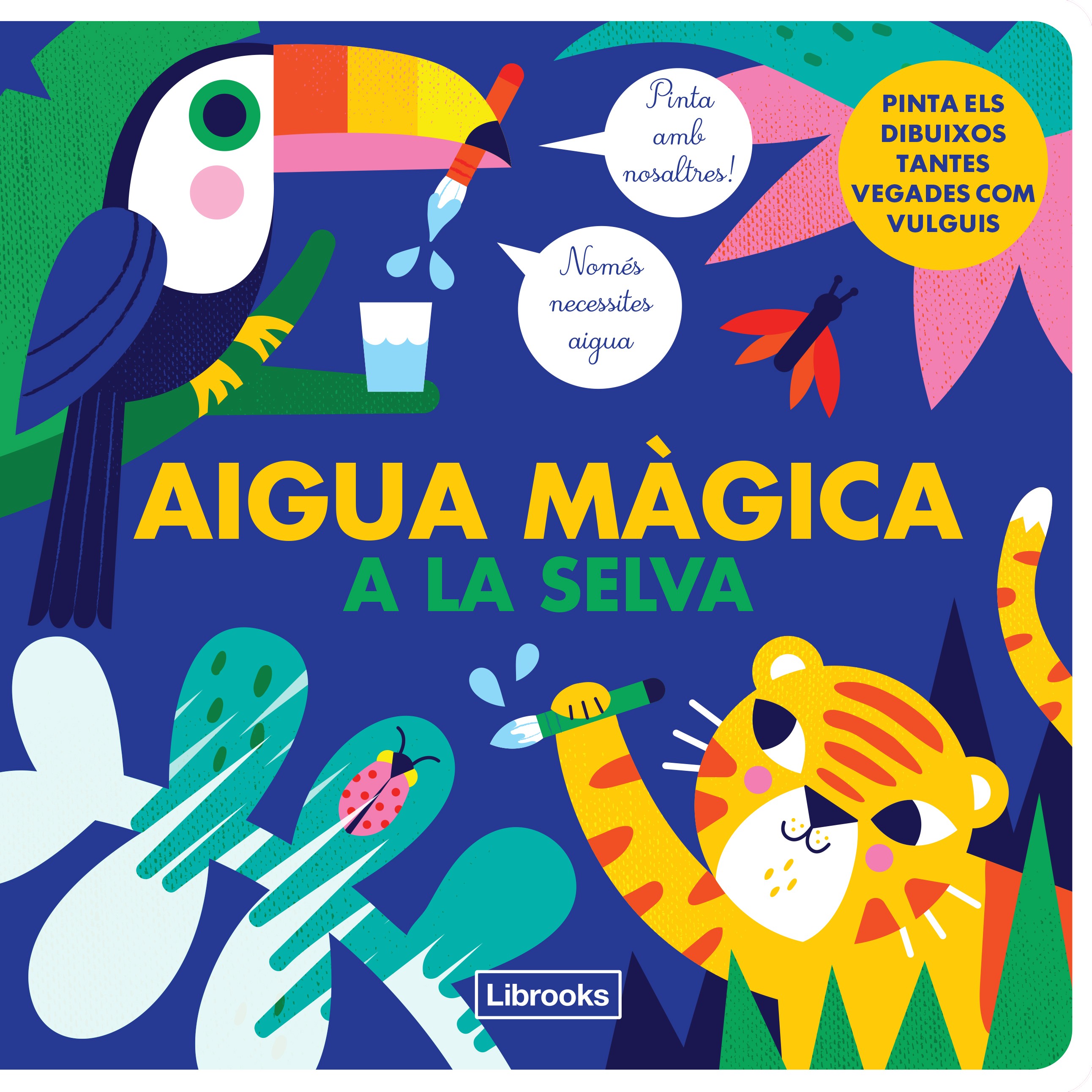 La selva és plena de colors i sorpreses. Vols descobrir-ne tots els secrets? Humiteja amb una mica d'aigua les parts blanques de cada dibuix. Pots fer-ho amb un pinzell (no inclòs) o directament amb el dit. Faràs màgia! Un cop sec, els dibuixos desapareixeran i podràs començar de nou. Deixa el llibre obert perquè s'assequi encara més ràpid i prepara't per a hores i hores de diversió.