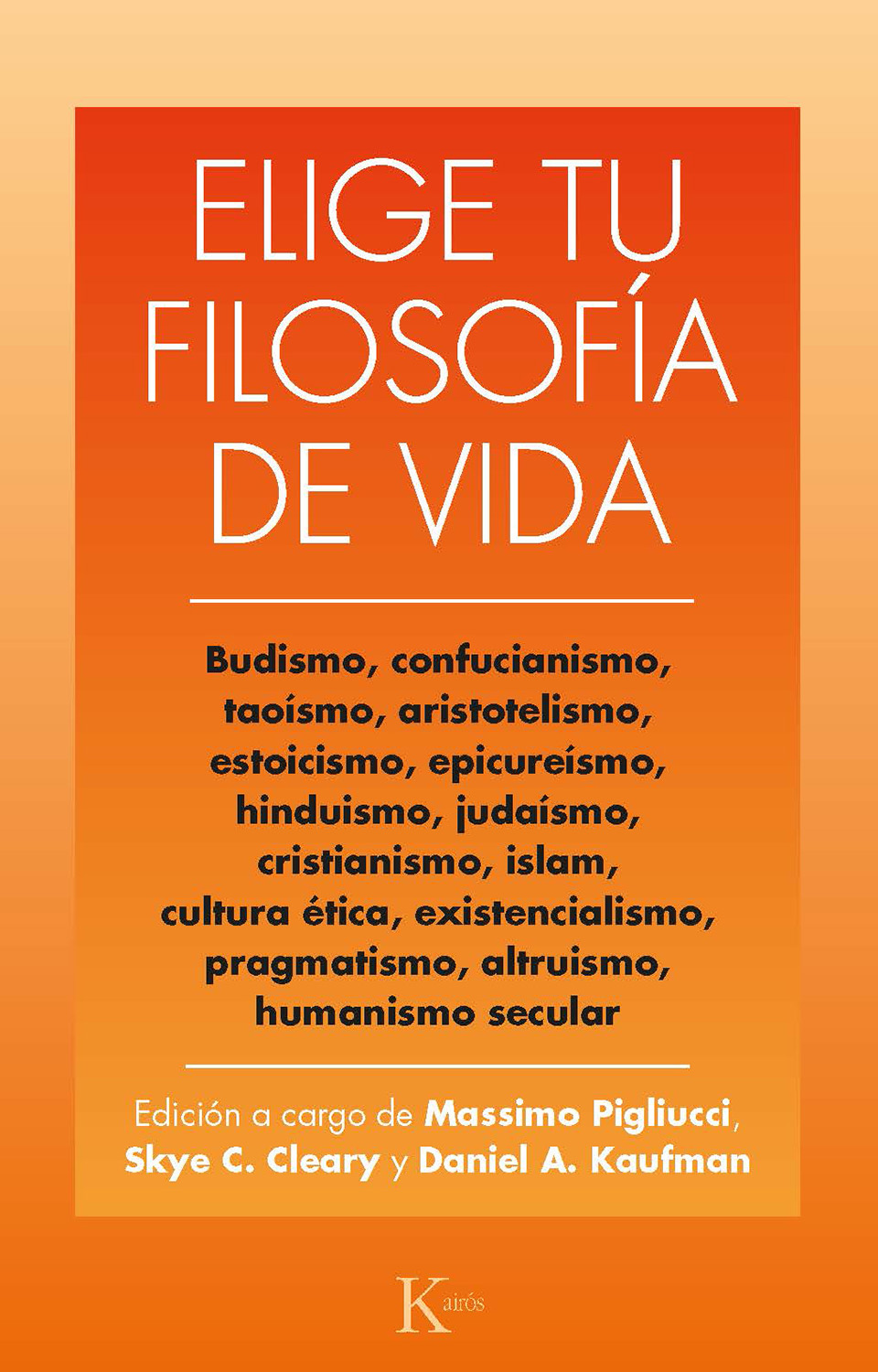 Esta fascinante selección de ensayos reúne a quince destacados filósofos que abordan lo que significa vivir según determinadas filosofías de vida. Desde filosofías orientales (como el taoísmo o el budismo), pasando por filosofías clásicas de Occidente (como el estoicismo o el epicureísmo), o cuatro grandes religiones (hinduismo, cristianismo, judaísmo e islam), hasta filosofías contemporáneas (como el existencialismo, el pragmatismo, el humanismo secular o el altruismo), cada uno de los colaboradores nos brinda un relato vivaz y personal del modo en que a todos ellos les resulta significativa la práctica de la tradición filosófica de su elección. Elige tu filosofía de vida no solo proporciona una guía para que los lectores puedan escoger su propia filosofía de vida, sino también un oportuno retrato de lo que en el siglo XXI significa llevar una vida sometida a examen.
