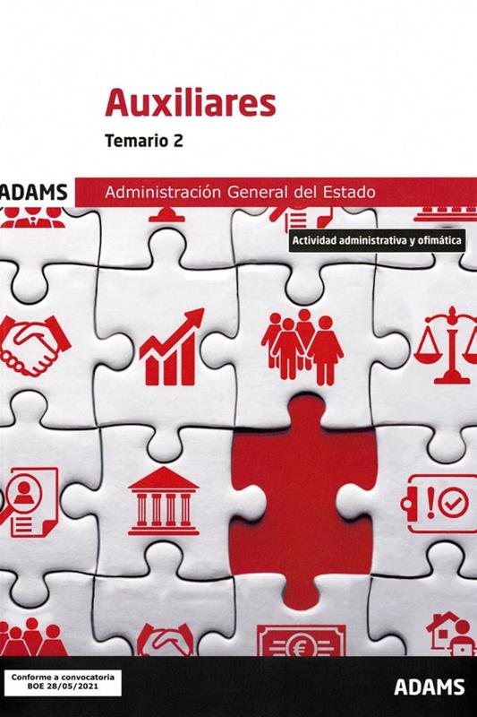 ADAMS publica la nueva edición, totalmente actualizada, del Temario 2, válido para la preparación del acceso al Cuerpo Auxiliar Administrativo de la Administración General del Estado. En él se desarrolla el bloque de Actividad administrativa y ofimática.