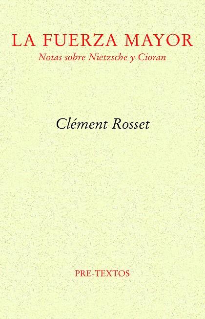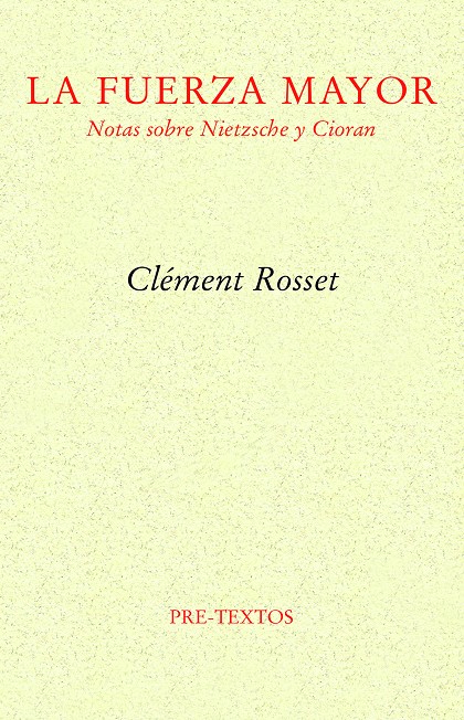 La presente obra es, sin duda, un buen exponente de la producción filosófica de Rosset. El concienzudo análisis de esa fuerza mayor que es la alegría, punto neurálgico de toda su filosofía, y su incidencia –presente o ausente– en el que quizá sea el máximo antagonismo filosófico al que puede llegarse a este respecto. Si «Notas sobre Nietzsche», uno de los estudios más lúcidos sobre la filosofía del discípulo de Dionisio y, sin duda, el más nietzscheano de todos ellos, ilustra un modo particular de concebir la filosofía, consagrada a destacar el elemento de la afirmación, «El descontento de Cioran» muestra a la perfección el caso contrario, a saber, el inconveniente de haber nacido, la teórica imposibilidad de aclimatarse a la irremediable y fatal aspereza de lo real.