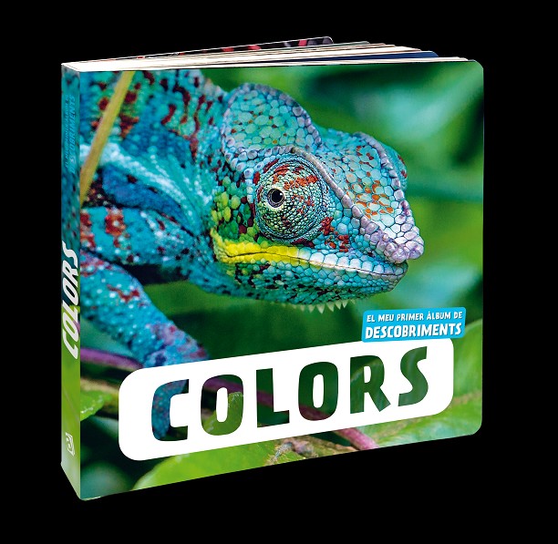 Llibre de cartró afí a la pedagogia Montessori amb belles imatges reals d'animals per aprendre els colors.