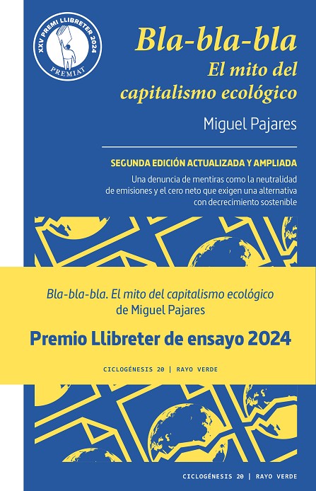 Con una prosa ágil y atractiva, Pajares hace en Bla-bla-bla un repaso conciso pero detallado y minuciosamente documentado de cada uno de esos mitos ecológicos con los que el capital corporativo maquilla las consecuencias de su insaciable crecimiento. Alejandro Pedregal, El Salto.