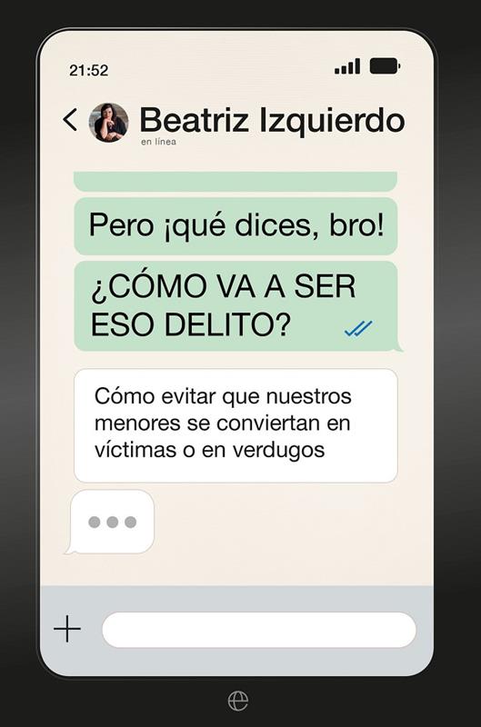 Muchas de las conductas que llevan a cabo nuestros menores, a edades cada vez más tempranas, no son bromas, sino delitos y, en ocasiones, de extrema gravedad. ¿Qué sucede cuando un menor no sabe (y tampoco sus padres) que está siendo víctima de un delito? Al desconocer que la ley lo protege, no acude a denunciarlo y, por ello, se encuentra doblemente indefenso. ¿Y desde el punto de vista de quien delinque? Si ignora que su conducta está tipificada y, por tanto, sancionada, no va a cambiar su comportamiento. ¿Somos conscientes los padres de nuestra responsabilidad si los hijos incurren en esas conductas? A lo largo del libro se analizan, de una manera muy didáctica y desde una perspectiva legal y criminológica, los delitos de los que nuestros menores son protagonistas, porque los sufren o porque los cometen: grooming, sextorsión, bullying, pornovenganza, acoso, odio, agresión sexual? Para prevenir es fundamental educar en la responsabilidad y fomentar la importancia de conocer de la ley, siendo conscientes de que nuestros hijos pueden ser víctimas, pero también verdugos. ?
